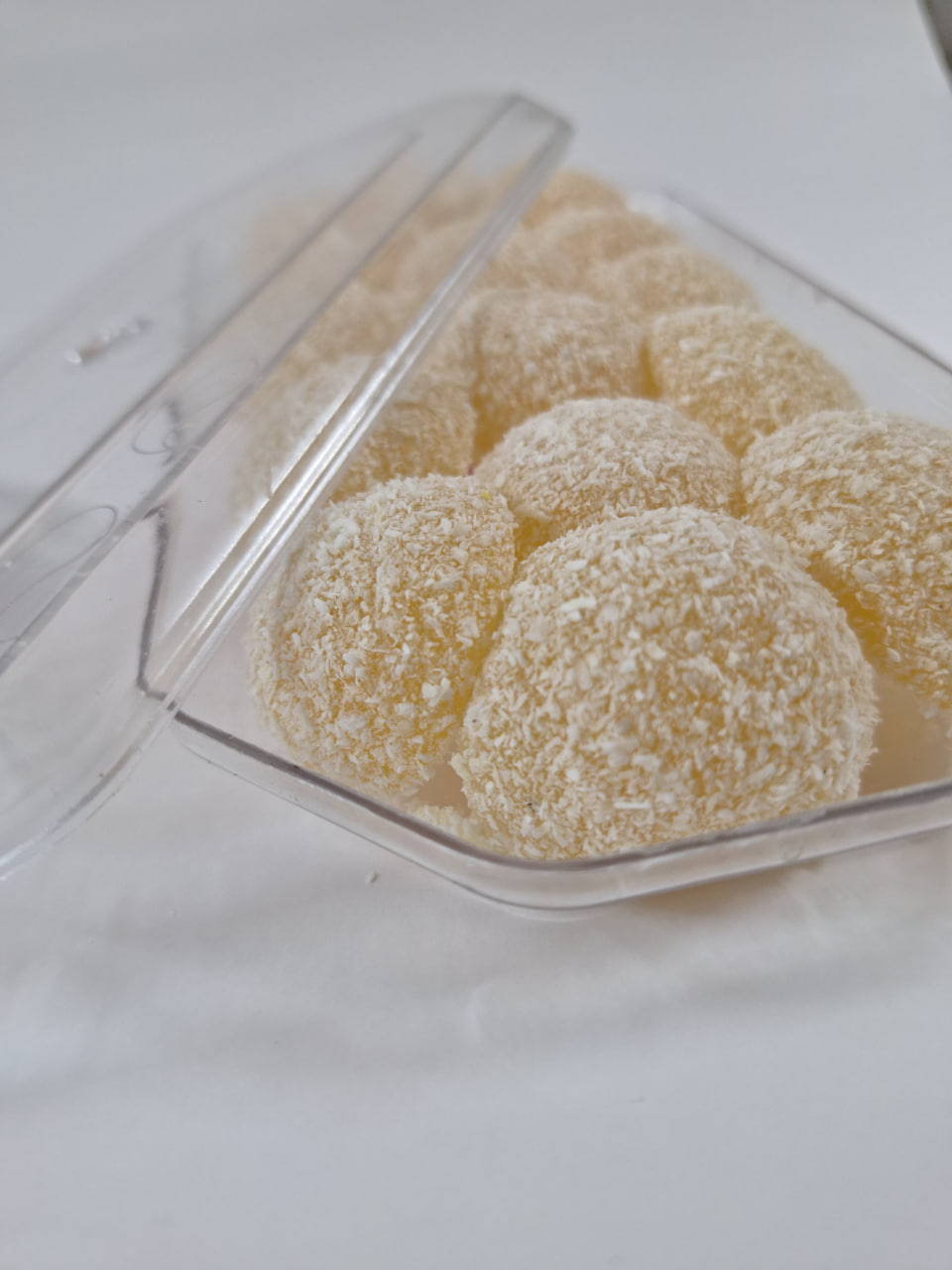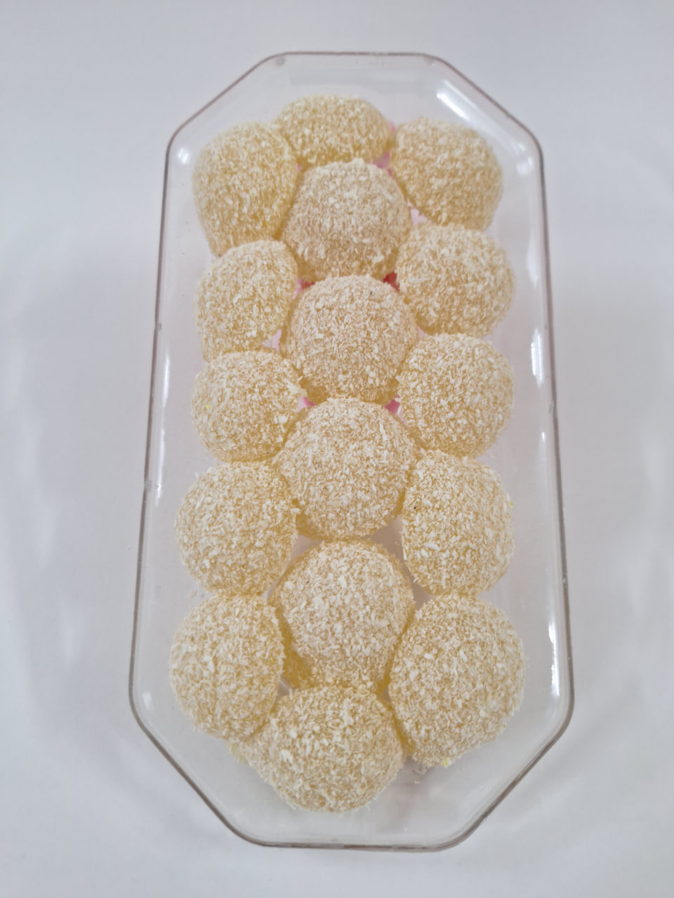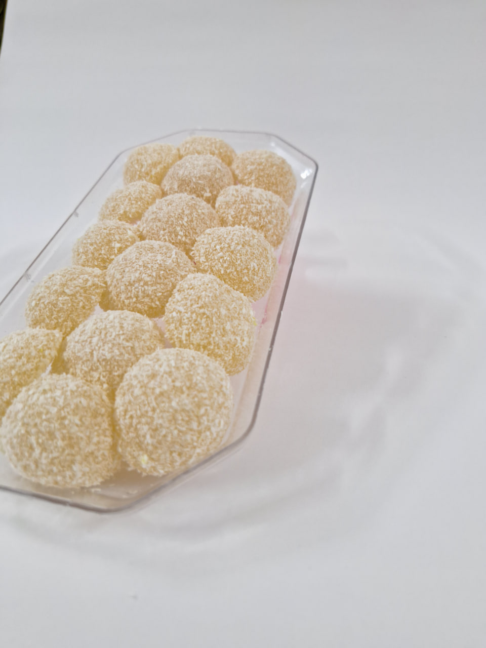 مواد اولیه: شکر، اب، نشاسته، اسید سیتریک، نارگیل، طعم دهنده های طبیعی